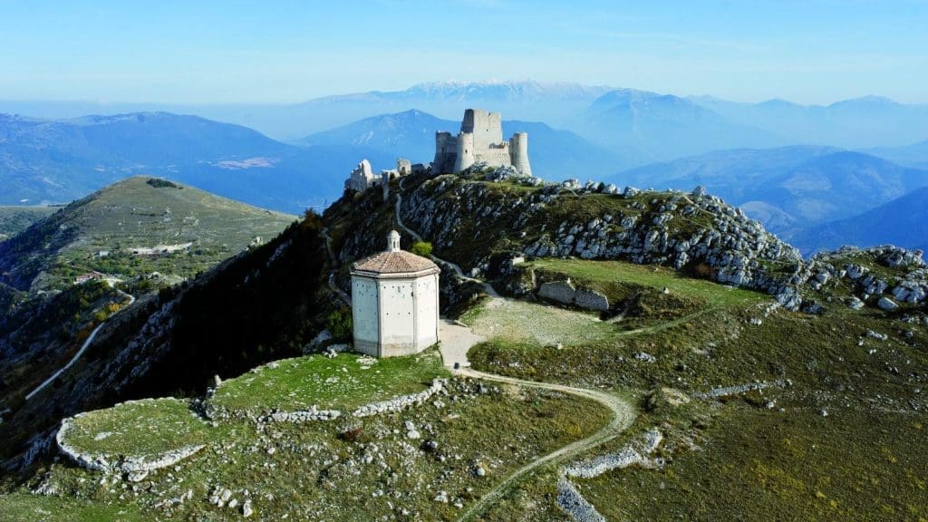 Wenn Sie ins Tal hinabsteigen, ist der nächste Halt Rocca Calascio, ein Ort, der etwas Unglaubliches an sich hat. Diese mittelalterliche Burg, die zu den höchsten Europas gehört, beherrscht von oben ein atemberaubendes Panorama. Ihre Silhouette, die sich perfekt in den Felsen einfügt, ist auch dank berühmter Filme wie Ladyhawke und Der Name der Rose zur Ikone geworden.